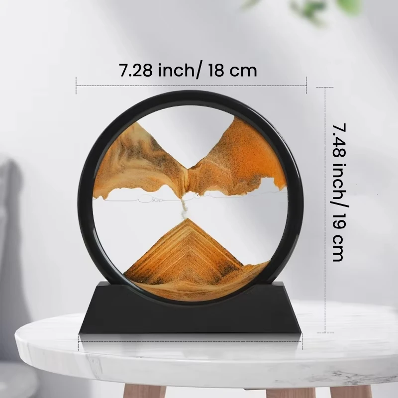 • تصميم زجاجي فاخر: إطار دائري شفاف عالي الجودة يمنحك رؤية واضحة وتفاصيل دقيقة لحركة الرمال.
