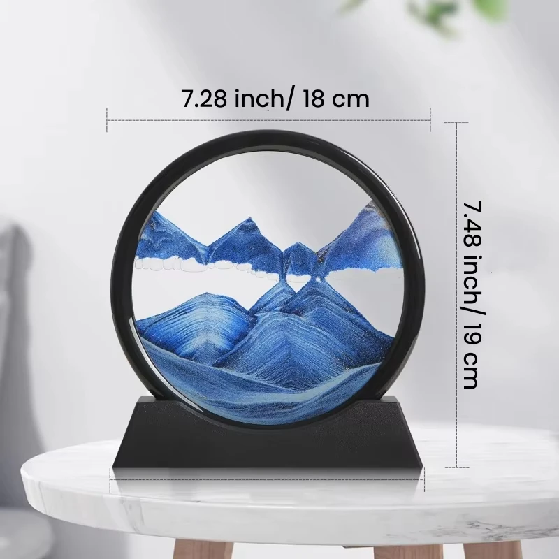 • تصميم زجاجي فاخر: إطار دائري شفاف عالي الجودة يمنحك رؤية واضحة وتفاصيل دقيقة لحركة الرمال.