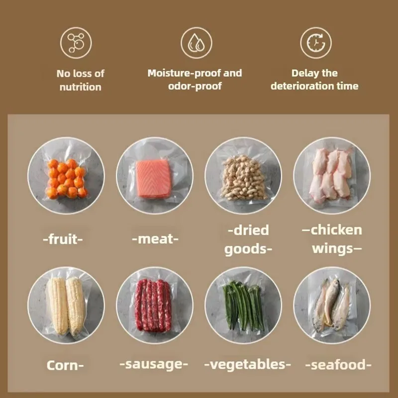 1️⃣ مضاعفة مدة الحفظ 5 مرات: بفضل تقنية سحب الهواء (Vacuum)، تقوم الآلة بإزالة الأكسجين تماماً من الكيس، مما يمنع نمو البكتيريا والعفن، ويحافظ على طعم، ولون، وقيمة الطعام الغذائية لفترات طويلة جداً.