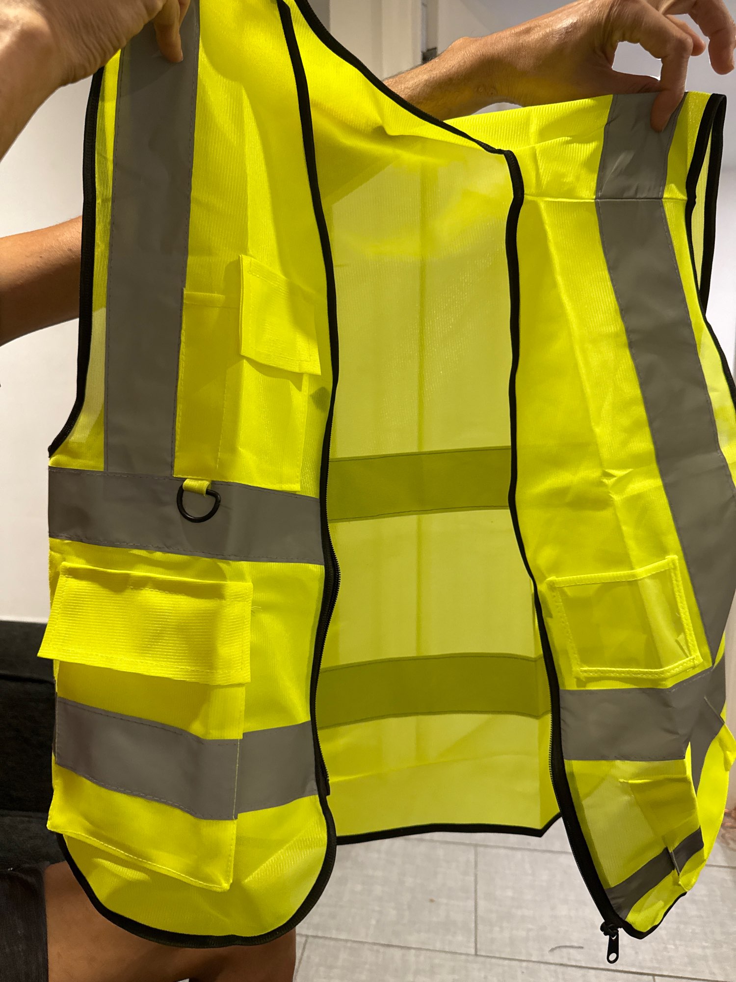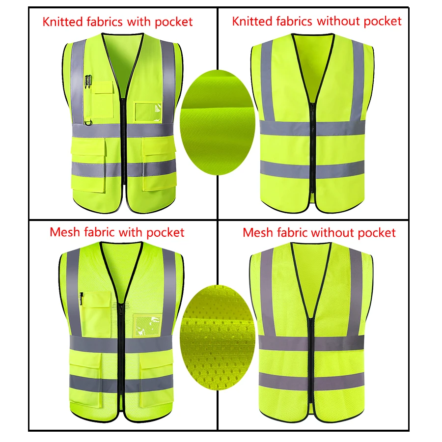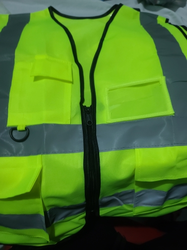 سترة أمان عالية الوضوح مصنوعة من نسيج بوليستر عالي الجودة يتسم بالخفة والمتانة الفائقة.