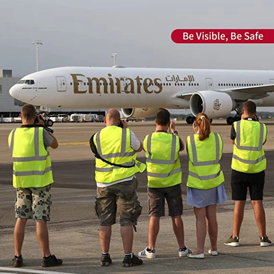 سترة أمان عالية الوضوح مصممة لتكون قابلة للتنفس، مما يمنع التعرق الزائد أثناء ممارسة الرياضة.
