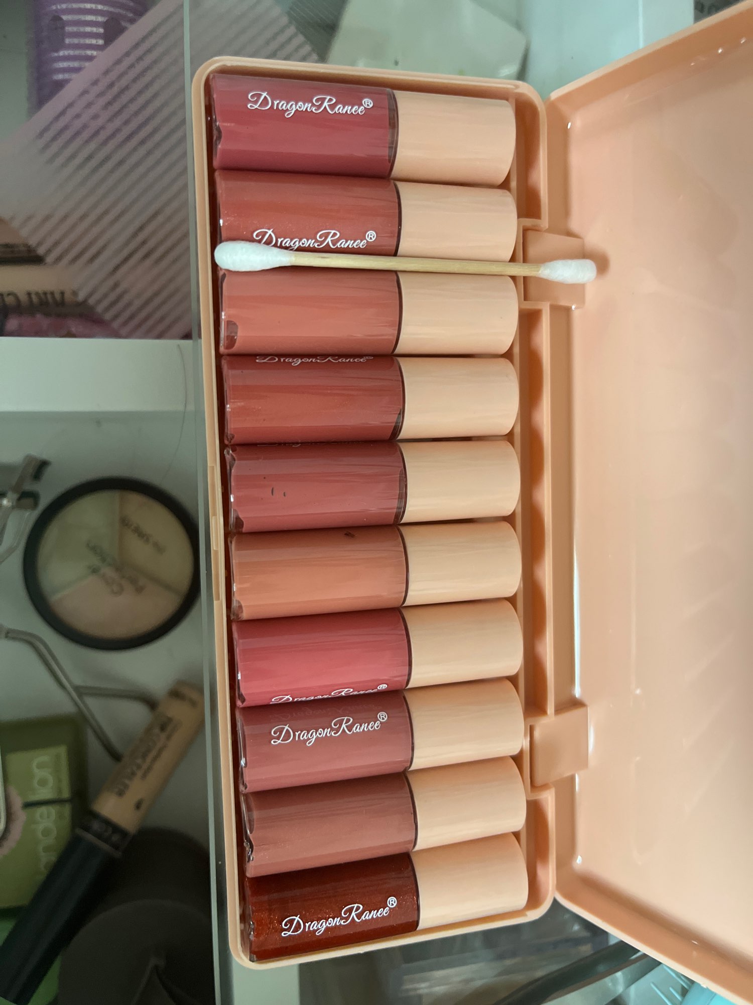امنحي شفاهك لمسة من الفخامة والتألق مع هذه المجموعة المتكاملة من ملمع الشفاه (Lip Gloss). يجمع هذا الطقم بين الأناقة والترطيب، حيث يأتيكِ بـ 10 ألوان متنوعة ومذهلة تناسب كافة إطلالاتك، سواء كنتِ تبحثين عن مظهر يومي ناعم أو إطلالة سهرة جريئة وخاطفة للأنظار.