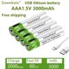 Daweikala1.5V AAA 3000mAh batería recargable de iones de litio para reloj despertador de ratón de juguete recargable por USB